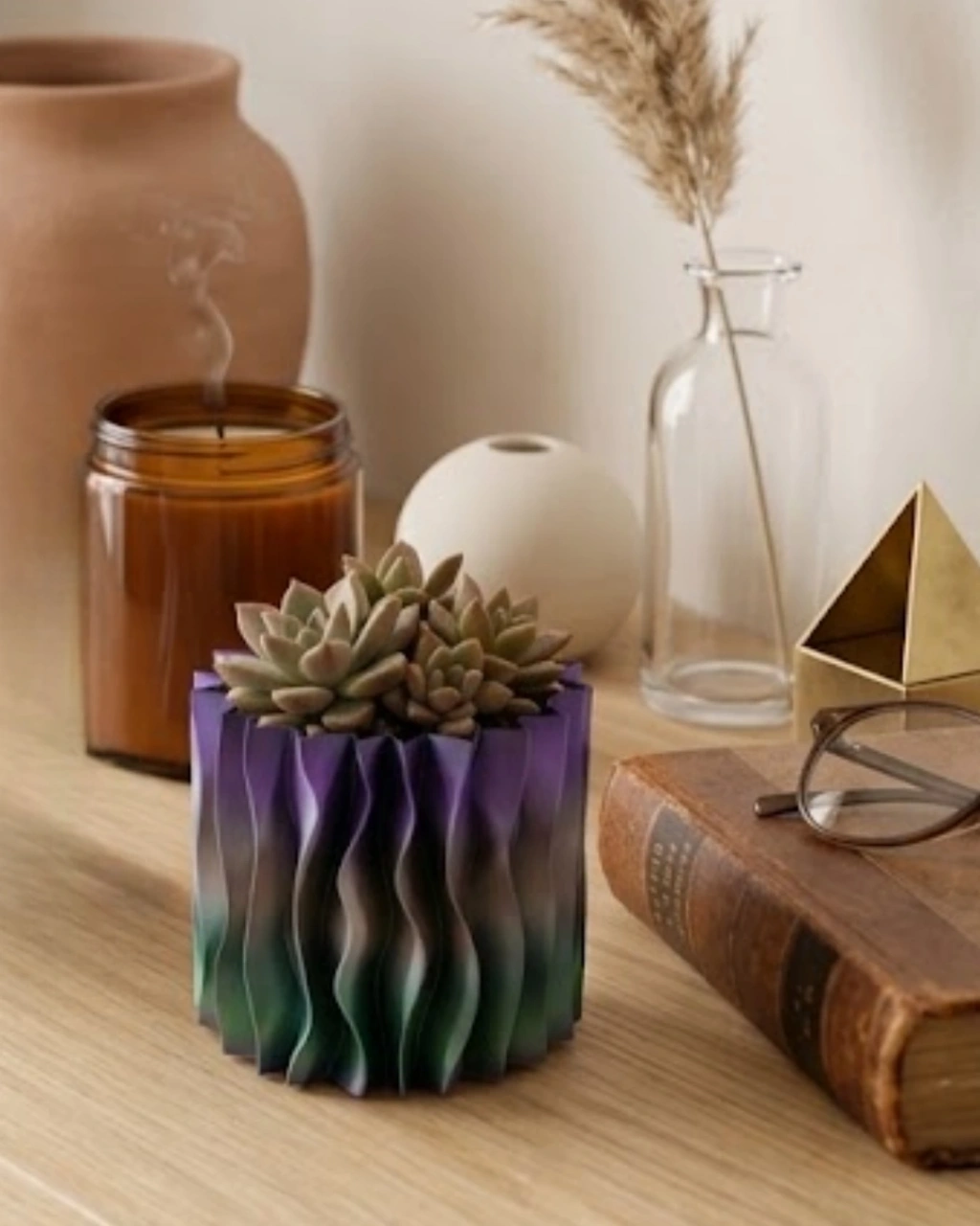 Sanatsal Dalga Desenli Mor 3d Baskı Dekoratif Vazo Ev Dekorasyonu