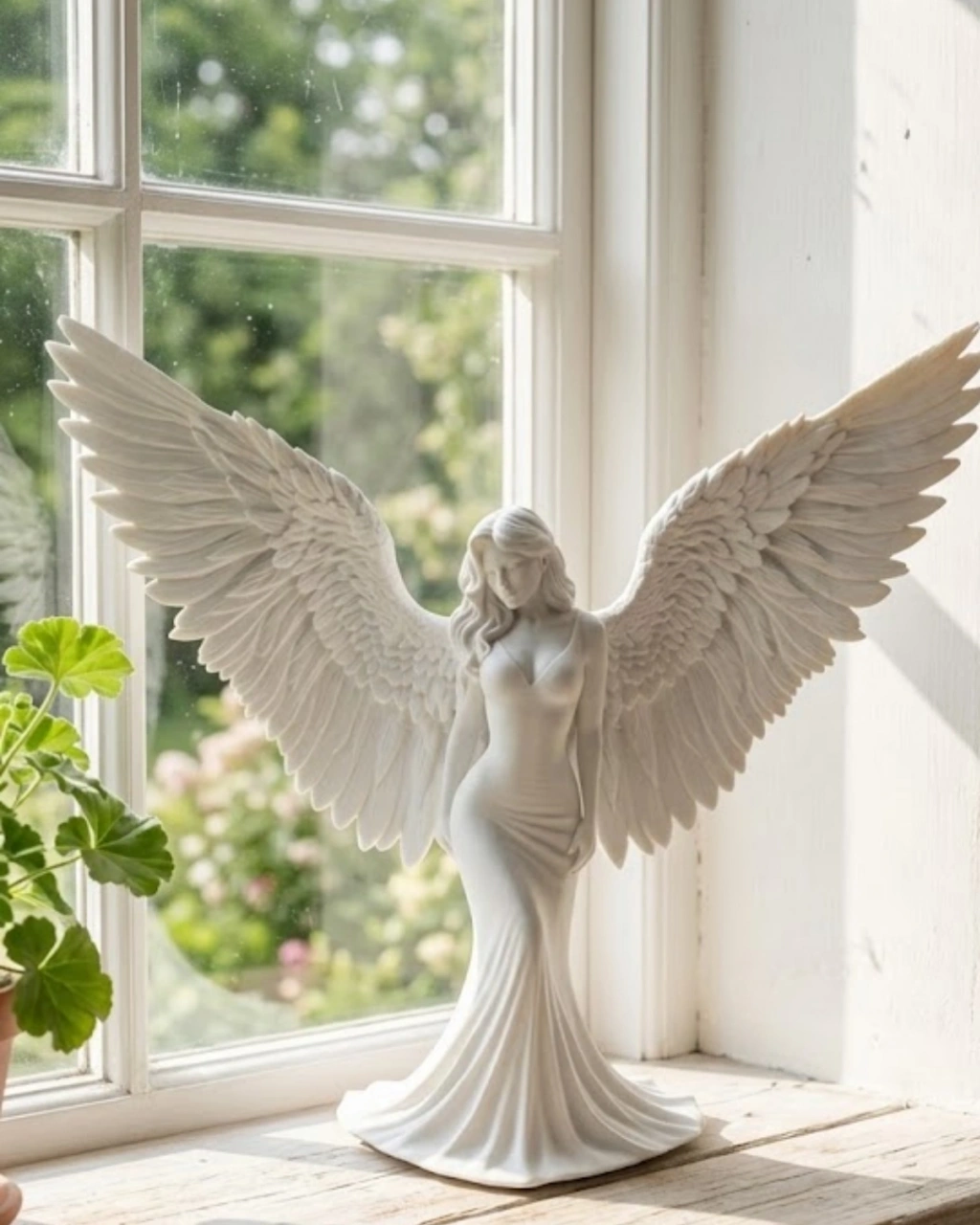 Sanatsal Melek Heykeli Kanatlı Kadın Figürlü 3d Dekoratif Biblo