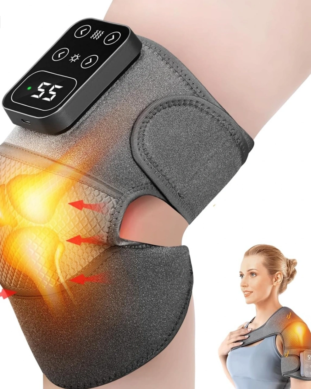 • Şarjlı Isıtmalı Diz Omuz Masaj Bandı Titreşimli Eklem Masaj Cihazı 2li Paket