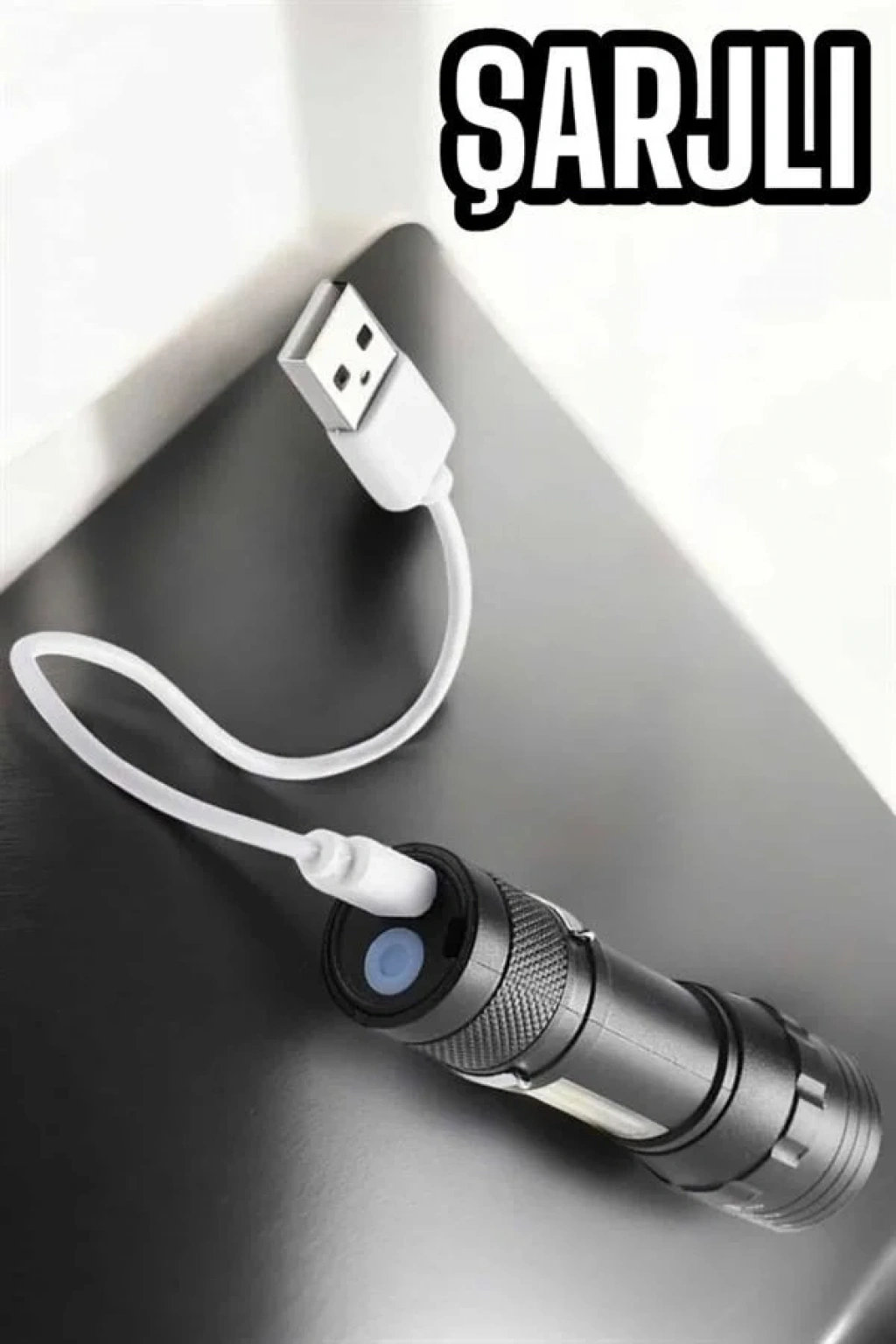 • Şarjlı Metal Zoomlu El Feneri Işıldak Led Işık Taşınabilir El Lambası