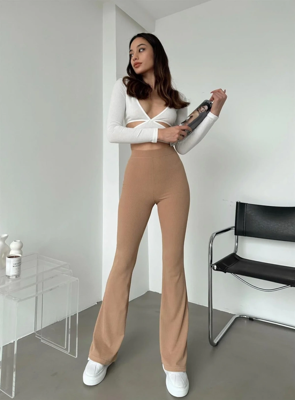 - Ürün esnek ve yüksek beldir, iç göstermez ve diz yapmaz