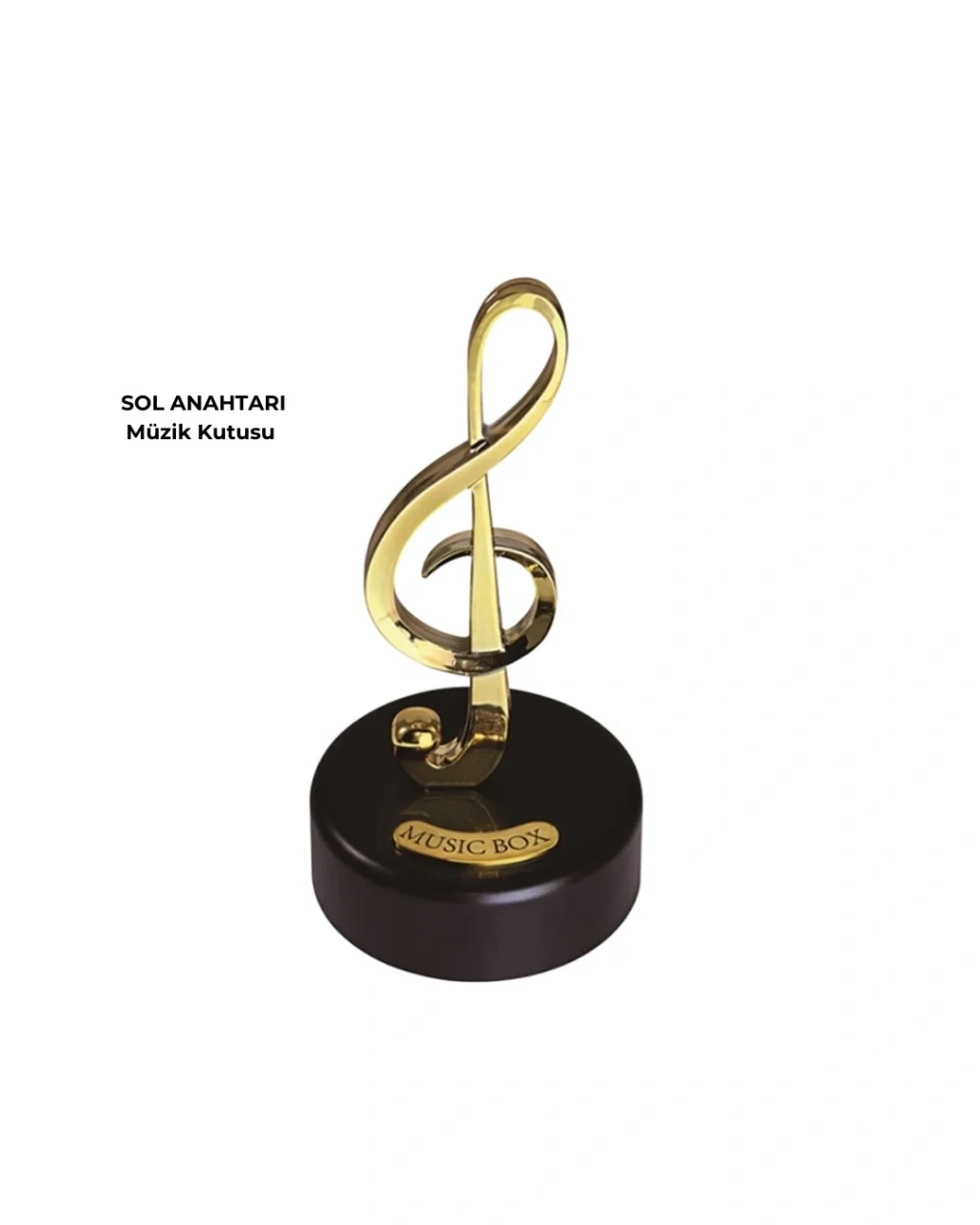 Altın sol anahtarı figürlü dönen müzik kutusu, müzik temasının zarafetle birleştiği dekoratif bir tasarımdır. Müzik severler için hem es hem manevi değeri yüksek bir obje olan bu ürün, döner mekanizması sayesinde yalnızca bir süs eşyası değil, aynı zamanda duygu yüklü bir müzik deneyimi sunar.Figürün sol anahtarı şeklinde tasarlanmış olması, ürünü klasik müzik temalarıyla uyumlu hale getirir. Altın renkli yüzeyi ışığı yansıtarak ortamda dikkat çekici bir parlaklık oluşturur. Mekanizmanın çalıştırılmasıyla birlikte figür dönmeye başlar ve eşlik eden melodi sayesinde ambiyans tamamen değişir.Sol anahtarı figürü, hem müziğin başlangıç işareti olarak bilinir hem de müzikle bağı olan kişiler için özel bir semboldür. Bu nedenle ürün, müzik öğretmenleri, öğrenciler, enstrüman çalanlar ve dekoratif objelere ilgi duyan herkes için anlamlı bir parçadır.Kompakt ve modern tasarımı sayesinde evin her alanında kullanılabilir. Salon, ofis, kitaplık, vitrin, komodin veya çalışma masası gibi alanlarda şık bir tamamlayıcı olarak yer alır. Ürün, 3 yaş ve üzeri için uygun olup dayanıklı malzemeden üretilmiştir.Melodi çalmaya başladığında ortama dingin bir hava katar. Özellikle gün sonunda rahatlamak isteyenler için ideal bir atmosfer oluşturur. Dönen sol anahtarı figürünün hipnotize edici görüntüsü hem yetişkinlere hem çocuklara huzur verir.Hediyelik olarak da en çok tercih edilen dekoratif müzik kutularından biridir. Özel günlerde sevdiklerinize duygusal bir hediye vermek isterseniz, sol anahtarı figürlü bu model tam size göredir.Hem görsel estetiği hem melodisiyle ön plana çıkan bu müzik kutusu, bulunduğu her ortama sıcaklık, zarafet ve müzikal bir dokunuş kazandırır.