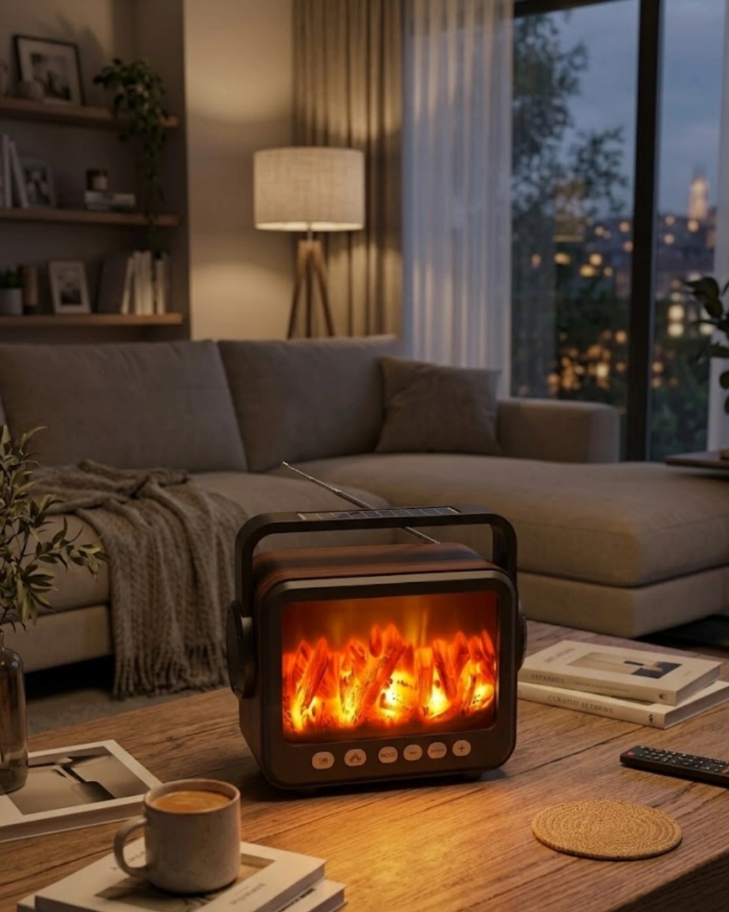 Şömine efektli bluetooth hoparlör, dekoratif tasarımı ve çok fonksiyonlu müzik özellikleri ile hem es bir ev dekorasyonu ürünü hem de güçlü bir ses sistemi olarak kullanılabilen pratik bir cihazdır. Gerçekçi şömine alevi görünümüne sahip LED ışık sistemi sayesinde bulunduğu ortama sıcak ve hoş bir atmosfer kazandırır. Özellikle salon, yatak odası, çalışma odası veya ofis ortamlarında dekoratif bir obje olarak da dikkat çeker.Bluetooth bağlantı özelliği sayesinde akıllı telefon, tablet ve bluetooth destekli diğer cihazlarla kolayca eşleşerek kablosuz müzik dinleme imkanı sunar. Ayrıca USB ve TF kart girişleri sayesinde müzik dosyalarınızı doğrudan cihaz üzerinden oynatabilirsiniz. Bu sayede farklı kaynaklardan müzik dinlemek oldukça kolay hale gelir.FM, AM ve SW radyo frekanslarını destekleyen radyo özelliği ile sevdiğiniz radyo kanallarını dinleyebilirsiniz. Güçlü hoparlör sistemi sayesinde net ve kaliteli ses performansı sunar. Subwoofer destekli yapısı sayesinde daha güçlü ve derin bass deneyimi sağlar.Taşınabilir yapısı sayesinde ev içinde farklı alanlarda kolayca kullanılabilir. LED şömine efekti sayesinde hem gece hem gündüz dekoratif bir görünüm sunar. Modern teknoloji ile nostaljik tasarımın birleştiği bu cihaz, hem müzik keyfi hem de dekoratif kullanım için ideal bir üründür.