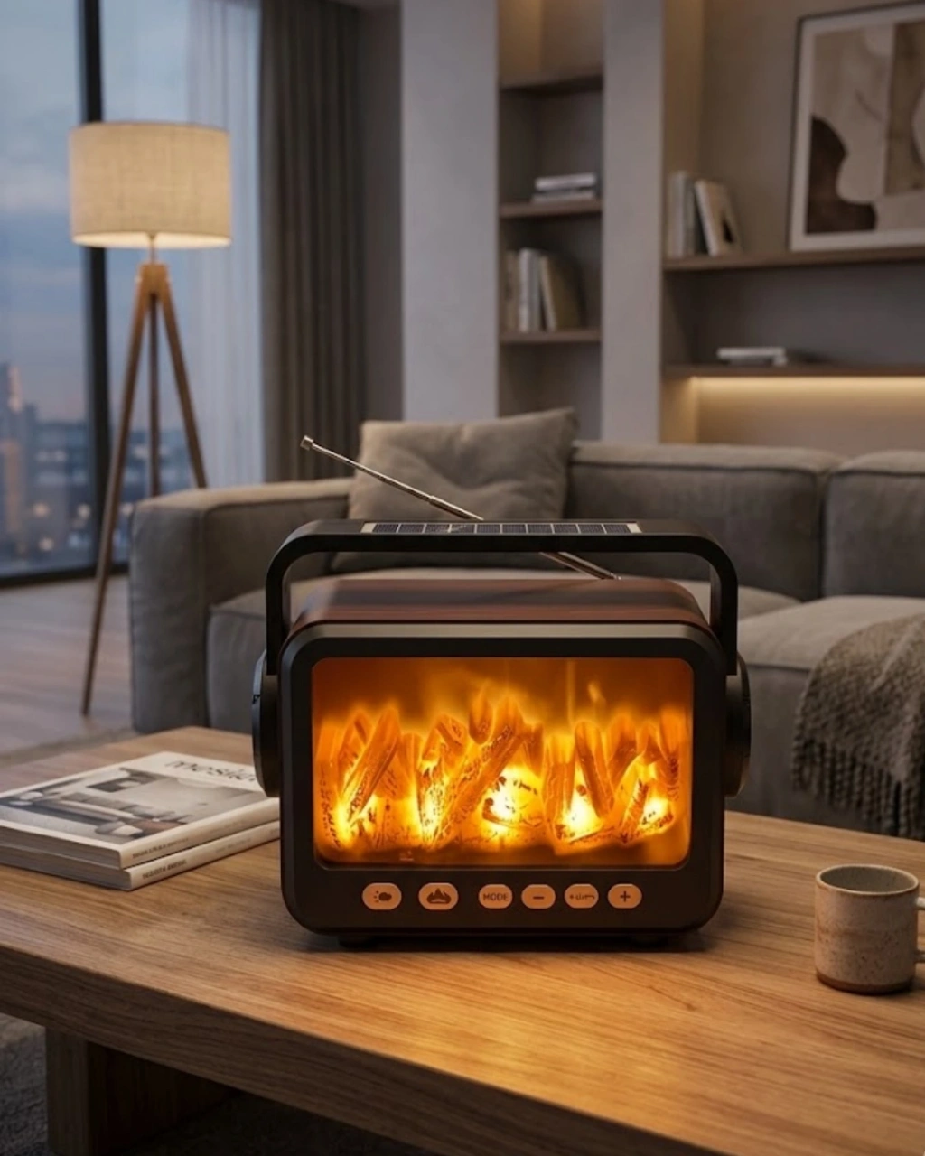 Şömine efektli bluetooth hoparlör, dekoratif tasarımı ve çok fonksiyonlu müzik özellikleri ile hem şık bir dekor ürünü hem de güçlü bir ses sistemi olarak kullanılabilir. Gerçekçi alev efektine sahip LED ışık sistemi sayesinde bulunduğu ortama sıcak ve es bir atmosfer kazandırır.Bluetooth bağlantısı sayesinde telefon, tablet ve diğer bluetooth destekli cihazlarla kolayca eşleşerek kablosuz müzik dinleme imkanı sunar. USB ve TF kart girişleri sayesinde müziklerinizi farklı kaynaklardan oynatabilirsiniz.FM radyo özelliği ile favori radyo kanallarınızı dinleyebilir, güçlü hoparlörü sayesinde kaliteli ses deneyimi yaşayabilirsiniz.