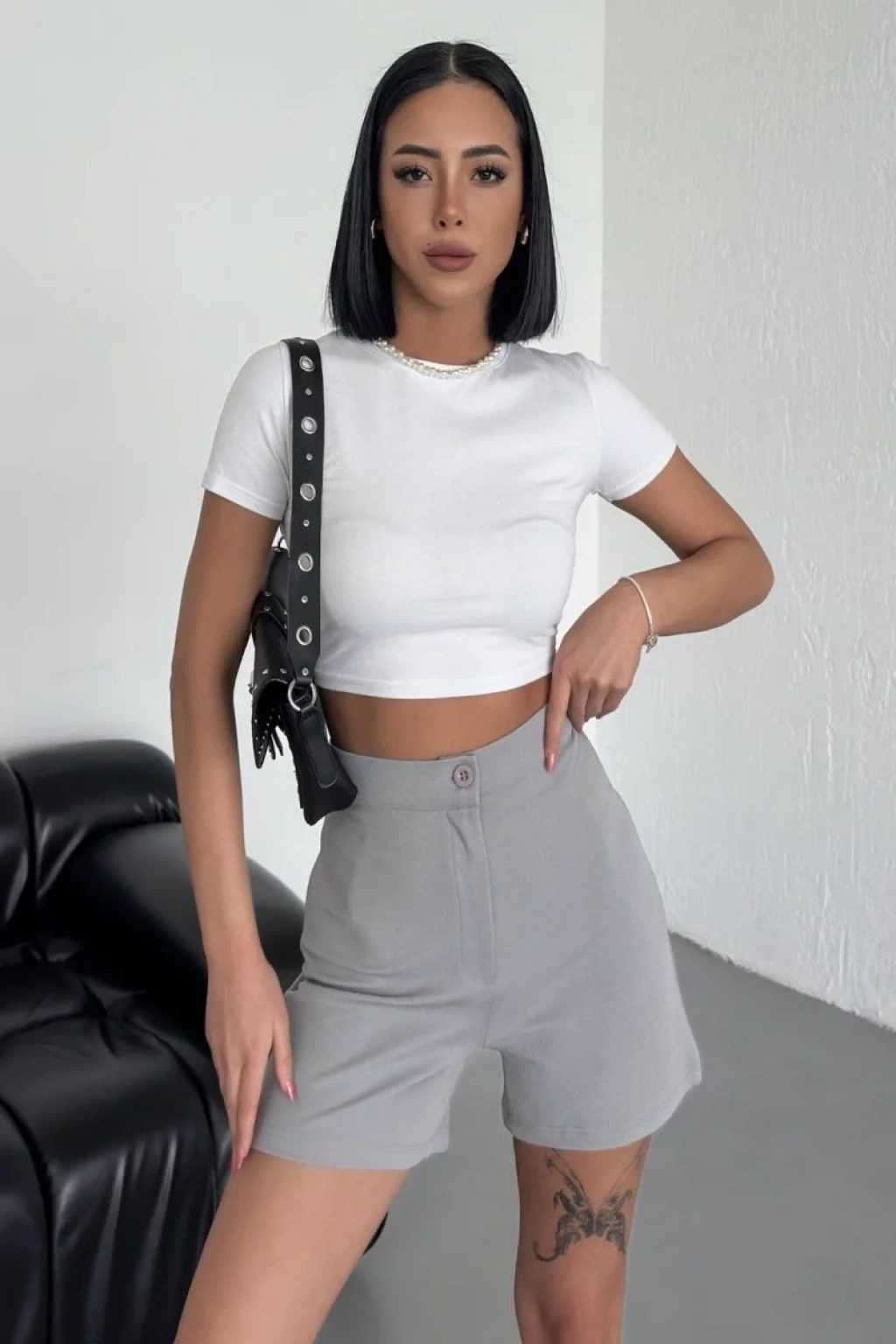 -Yazın serin rüzgarlarını hissetmek isteyenler için tasarlanan gri yüksek bel esnek likralı krep şort, hafifliği ve rahatlığı bir arada sunuyor! Likralı kumaşı, hareket özgürlüğünüzü kısıtlamadan gün boyu konfor sağlarken, gri rengiyle ferahlık ve tarzı birleştiriyor.