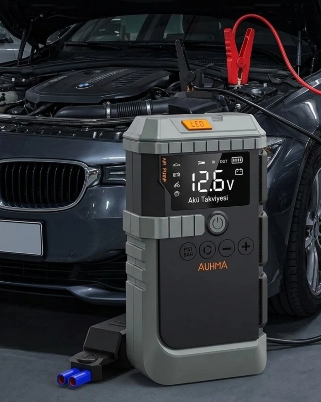 Bu taşınabilir çok fonksiyonlu araç cihazı, sürücülere hem güvenlik hem de pratik kullanım avantajı sunar. Araç akü takviyesi, hava kompresörü, powerbank ve LED aydınlatma özelliklerini bir araya getiren bu cihaz, yolculuk sırasında ihtiyaç duyabileceğiniz birçok işlevi tek bir ürünle karşılar.Akü takviye özelliği sayesinde araç aküsü bittiğinde aracınızı hızlı bir şekilde çalıştırabilirsiniz. Güçlü başlangıç akımı sayesinde benzinli motorlar için etkili bir destek sağlar. Akıllı koruma sistemi ters bağlantı ve aşırı akım gibi risklere karşı güvenli kullanım sunar.Cihazın entegre hava pompası, araç lastiklerinin doğru basınçta olmasını sağlar. Dijital basınç göstergesi sayesinde lastik basıncı net şekilde görüntülenebilir ve kolayca ayarlanabilir. Bu özellik hem sürüş güvenliğini artırır hem de lastik ömrünü uzatır.Farklı şişirme başlıkları sayesinde cihaz yalnızca araç lastikleri için değil, aynı zamanda bisiklet lastikleri, motosiklet lastikleri ve spor topları için de kullanılabilir. Bu sayede evde, garajda veya seyahat sırasında çok amaçlı kullanım sunar.USB çıkışları sayesinde cihaz aynı zamanda bir güç bankası görevi görür. Elektronik cihazlarınızı şarj ederek enerji ihtiyacınızı karşılar. Bu özellik özellikle uzun yolculuklarda ve kamp aktivitelerinde oldukça faydalıdır.LED ışık sistemi karanlık ortamlarda güvenli kullanım sağlar. Gece araç kontrolü, kamp ortamı veya acil durumlarda güçlü ışık ile çevreyi aydınlatabilir. SOS ışık modu ise dikkat çekmek için kullanılabilir.Taşınabilir ve dayanıklı yapısı ile bu çok fonksiyonlu araç cihazı, sürücüler için pratik bir yol yardım çözümü sunar. Araç bagajında bulundurulabilecek en kullanışlı ekipmanlardan biri olarak öne çıkar.