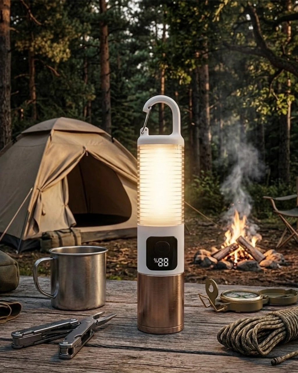 Taşınabilir Led Kamp Feneri Usb Şarjlı Yüksek Parlaklık 500 Lümen Güç Göstergeli