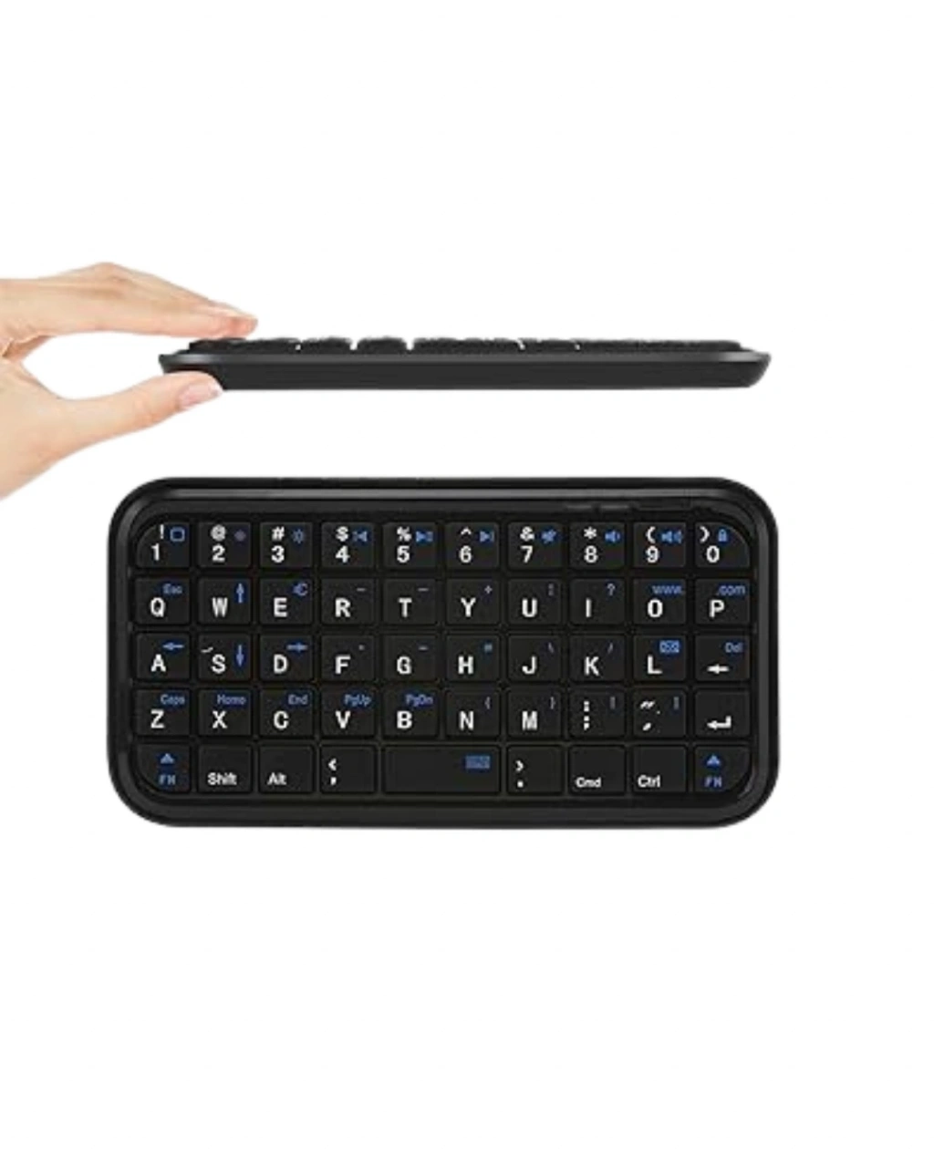 Mini bluetooth klavye, kablosuz bağlantı özelliği sayesinde telefon, tablet ve bilgisayarlarla uyumlu şekilde kullanılabilen kullanışlı bir aksesuardır. Bluetooth teknolojisi sayesinde kablosuz ve pratik kullanım sağlar.Taşınabilir ve kompakt tasarımı sayesinde çantada kolayca taşınabilir ve mobil kullanım için idealdir.10 metreye kadar bağlantı mesafesi sayesinde uzaktan kullanım imkanı sunar.USB kablo ile şarj edilebilen dahili bataryası sayesinde uzun süreli kullanım sağlar ve tekrar şarj edilerek kullanılabilir.