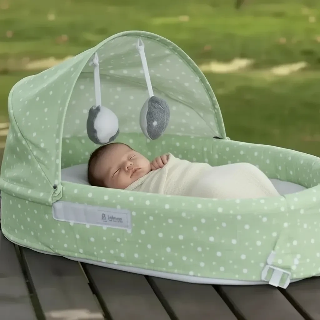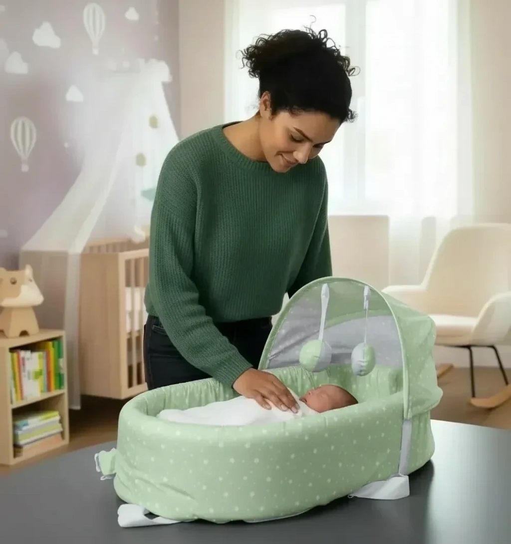 Taşınabilir Portatif Bebek Yatağı,Sırt Çantasına Dönüşebilen Portatif Bebek Beşiği (Yeşil)