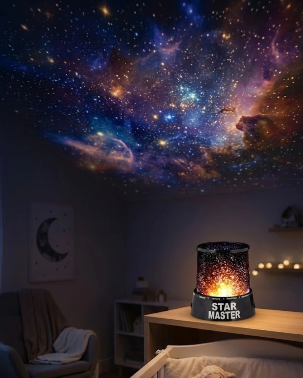 Renk değiştiren yıldız projektör gece lambası, odanızı büyüleyici yıldız ışıklarıyla aydınlatan dekoratif bir aydınlatma çözümüdür. Tavana ve duvarlara yansıyan yıldız efektleri sayesinde ortamda galaksi görünümü oluşur.LED ışık teknolojisi sayesinde enerji tasarruflu çalışır ve uzun süreli kullanım sunar. Işık renkleri otomatik olarak değişerek ortamda görsel bir zenginlik oluşturur.Ürün hem USB bağlantısı ile hem de pille çalışabilir. Bu sayede kullanım açısından oldukça esnektir ve farklı ortamlarda rahatlıkla kullanılabilir.Çocuk odası, yatak odası veya romantik dekorasyonlar için ideal bir gece lambasıdır.