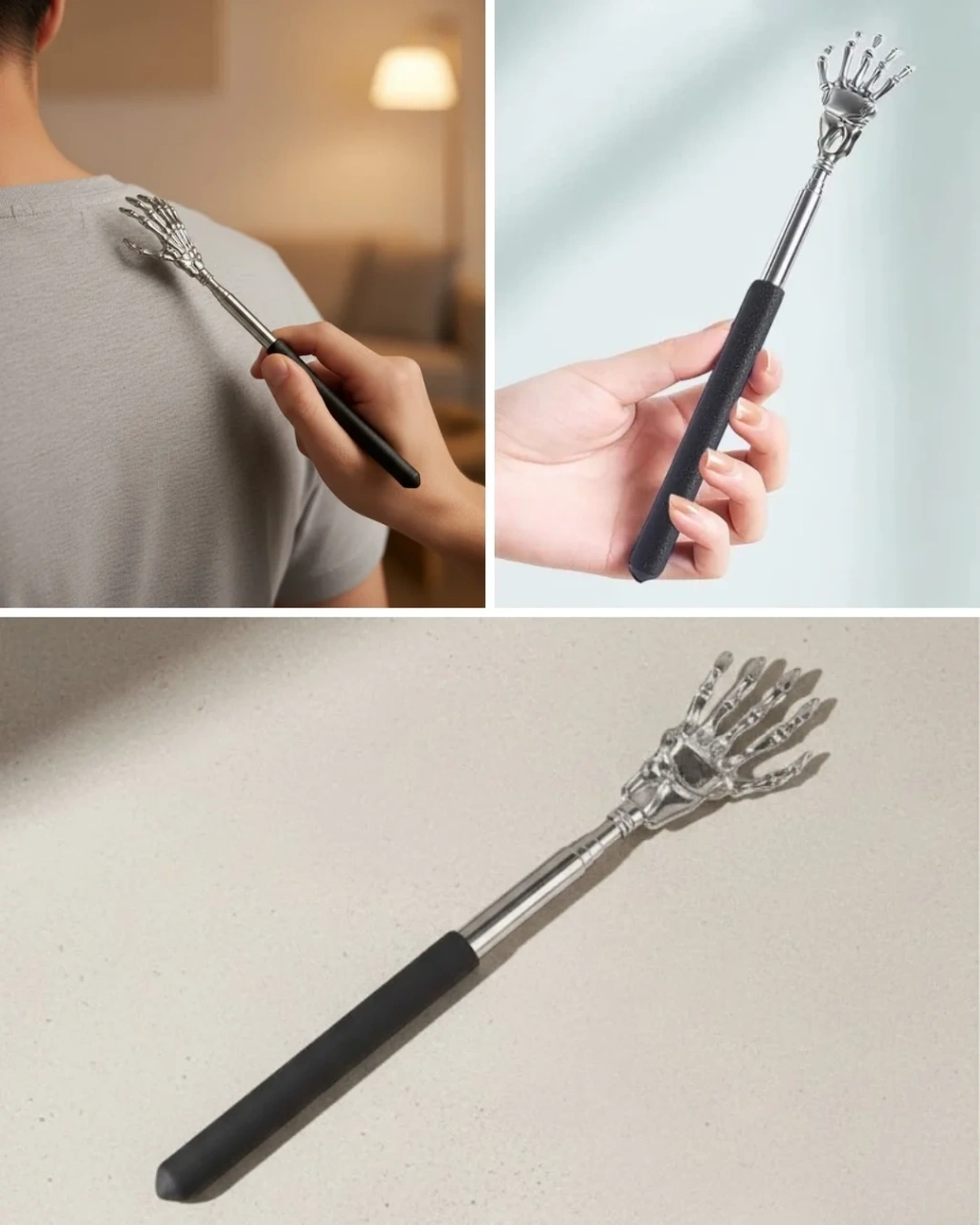 Teleskopik el masaj ve sırt kaşıma aleti, kaşıntıyı gidermenin yanı sıra rahatlatıcı bir kullanım sunar. Ayarlanabilir uzunluğu sayesinde farklı kullanım ihtiyaçlarına uyum sağlar ve sırtın her noktasına erişimi kolaylaştırır.Katlanabilir ve hafif tasarımı, ürünü seyahatler için ideal hale getirir. Çantanızda fazla yer kaplamadan taşıyabilir ve ihtiyaç duyduğunuz her an kullanabilirsiniz. Figürlü uç tasarımı sayesinde keyifli ve dikkat çekici bir kullanım deneyimi sunar.Günlük yaşamda pratik çözümler arayan kullanıcılar için uygundur. Konforlu, taşınabilir ve ergonomik bir sırt kaşıma atı arayanlar için ideal bir seçenektir.