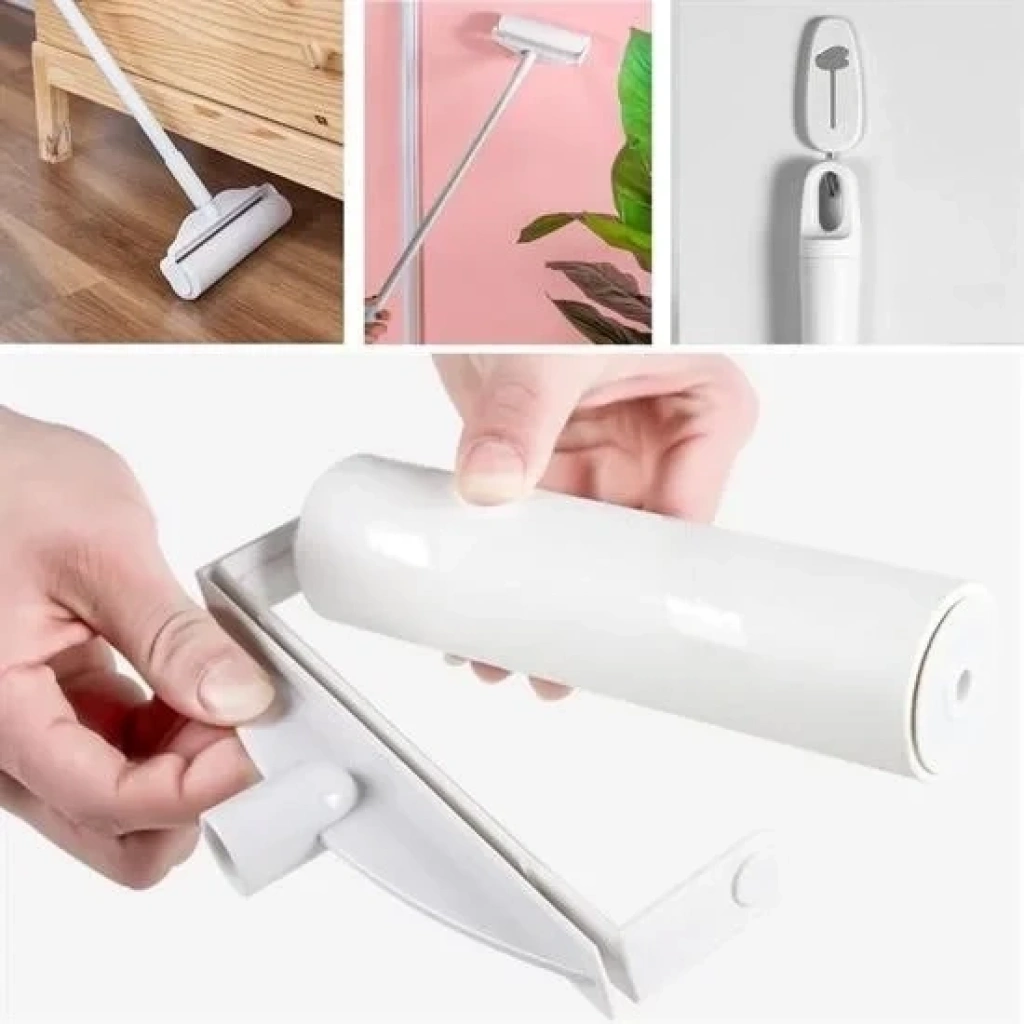 Teleskopik Saplı 24 Cm Yapışkanlı Tüy Rulosu Uzayabilen Hav Tüy Toz Toplayıcı Rulo 2 Yedekli