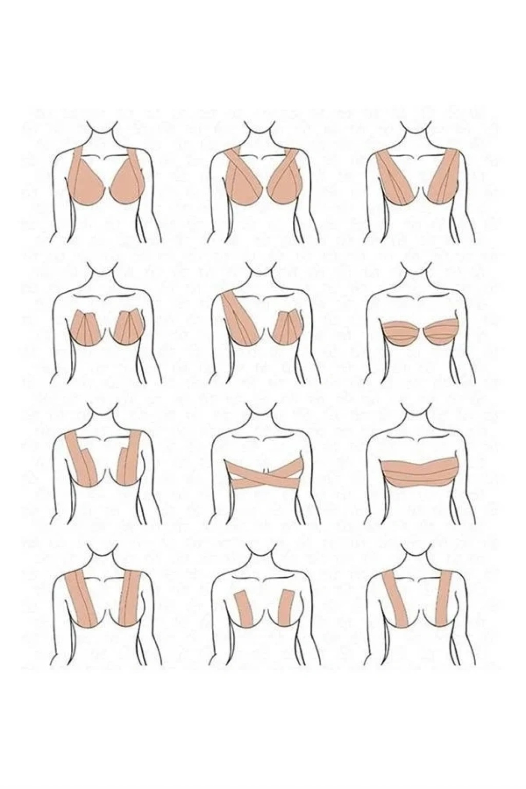 Görünmez Destekleyici Göğüs BandıGöğüslerinizi doğal bir şekilde desteklemek ve kaldırmak için özel olarak tasarlanmış bu bant, %95 pamuk ve %5 elastan içeriğiyle cildinize nefes aldırır. Yüksek yapışkanlık gücü sayesinde gün boyu güvenli bir tutuş sağlarken, suya ve terlemeye dayanıklı yapısıyla özel günlerde, davetlerde ve günlük kullanımda rahatlıkla tercih edilebilir. Askısız, sırtı açık ve derin dekolteli kıyafetlerle mükemmel uyum sağlar.Cilt Dostu ve Esnek KullanımÖzel dalgalı yapışkan tasarımı sayesinde teninize zarar vermeden güçlü bir tutuş sunan göğüs bandı, konforlu ve hava geçirgen yapısı ile uzun süreli kullanım için idealdir. Dilediğiniz forma uygun olarak kesilebilir ve farklı göğüs ölçülerine uyum sağlayarak kişiselleştirilmiş bir deneyim sunar. Kullanım öncesi hassas ciltler için küçük bir test yak reaksiyon ölçümü yapılması önerilir.Kıyafetlerde İz Yapmazİnce ve hafif yapısı sayesinde kıyafetlerinizin altında iz yapmadan doğal bir görünüm sunar. Özel gece elbiseleri, straplez üstler veya sportif kombinlerle kullanıma uygundur. Cilt üzerinde kolayca uygulanıp çıkarılabilen yapısı ile pratik bir kullanım sağlar. Özgüvenle hareket etmenizi sağlayacak bu göğüs bandı, gün boyu konfor ve destek sunar.