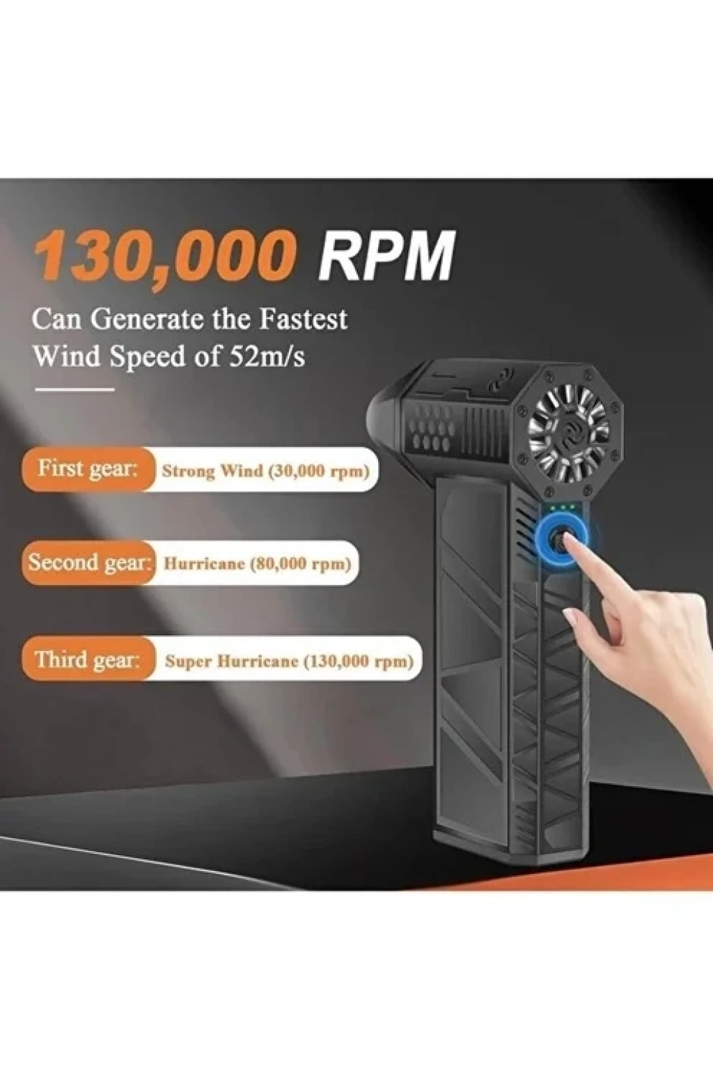 geliştirilmiş şiddetli turbofan, saniyede 60 metreye kadar, yani, süper güçlü rüzgar hızları üretebilen, maksimum 130.000 RPM çıkış hızına sahip fırçasız DC yüksek hızlı bir motor kullanır. Güçlü bir güce, uzun süreli stabiliteye sahiptir ve uzun yükler altında makineyi yakmaz. Ayrıca, tek viteste 8 saate kadar ultra uzun pil ömrü ile şarj koruması ve aşırı ısınma koruması özelliklerine de sahiptir. 4000 mAh pil kapasitesine sahip, kullanımını daha dayanıklı hale getirir! Üç hız ayarı size benzersiz bir deneyim sunar.