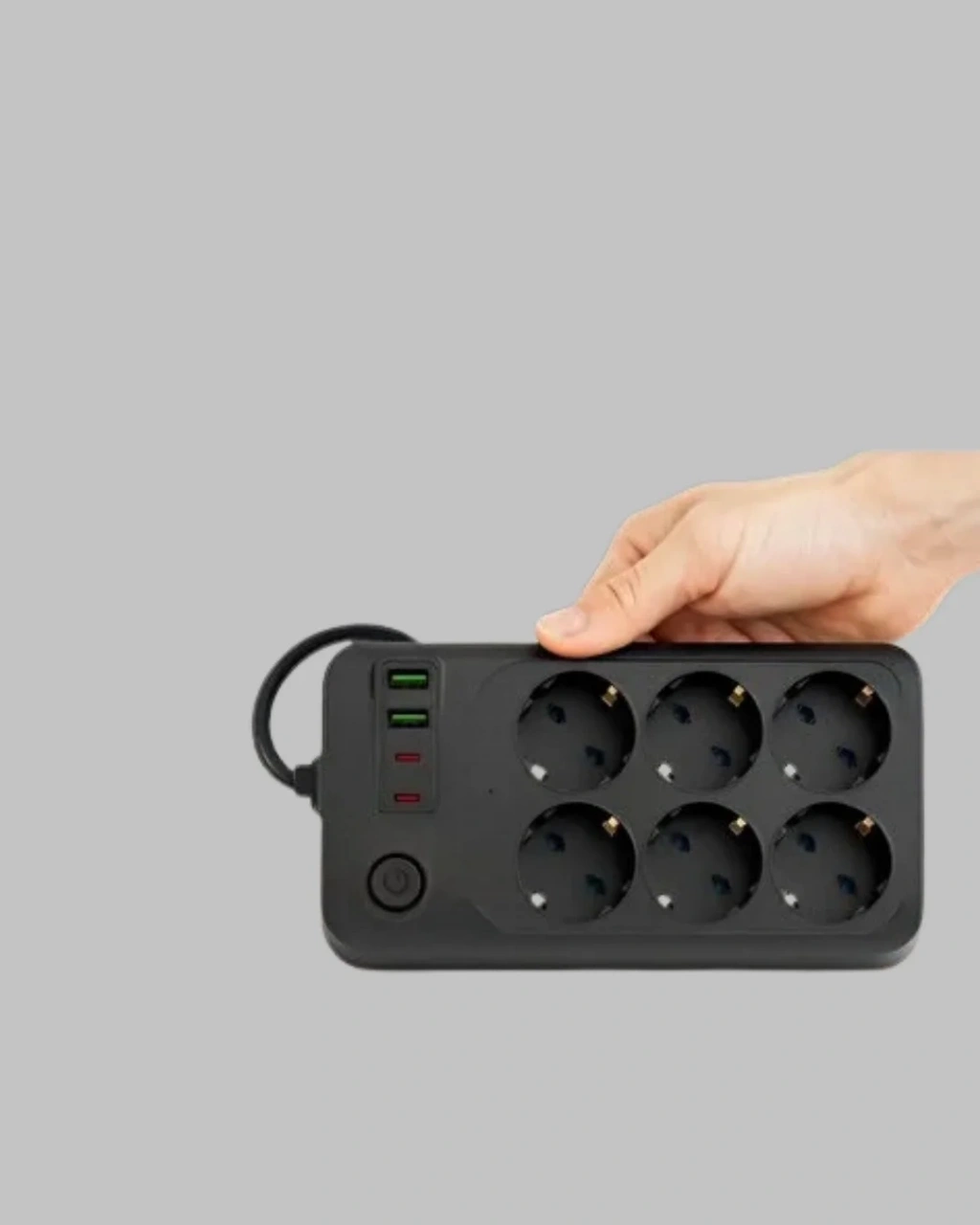 Bu termal akım korumalı 6’lı priz, güçlü cihazlarınızı aynı anda güvenli şekilde kullanmanız için tasarlanmıştır. 2500W kapasitesi sayesinde bilgisayar, TV, ses sistemi, modem, mutfak ekipmanları gibi birçok ürünü rahatça çalıştırır. USB & Type-C 2.1A çıkışları şarj adaptörü kullanmadan hızlı enerji aktarımı sağlar. Termal akım koruma teknolojisi, aşırı ısınma riskini önlerken 10A ünite voltaj dengesizliğinde koruma sunar. 2 metre kablosu, geniş alan kullanımını destekler.