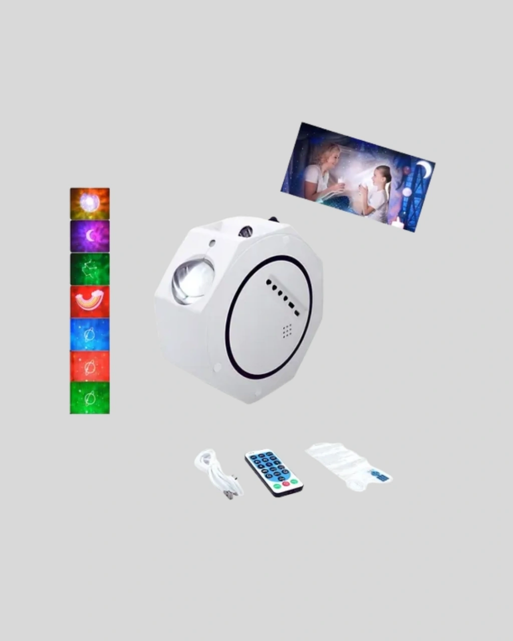 Bu galaksi ve yıldız projeksiyon lambası, 360° döndürülebilir yapısı ile ışık açısını tamamen kontrol etmenizi sağlar. Tavana veya duvara yansıtılan efektler, mekâna derinlik ve hareket kazandırır. Yıldızlı gökyüzü efekti, bulunduğunuz alanı sakinleştirici ve büyüleyici bir atmosfere dönüştürerek görsel bir şölen sunar.Çok modlu aydınlatma sistemi, farklı ortamlara uyum sağlar. Okyanus dalgalarını andıran yumuşak geçişler, yıldızlı gece manzarası veya sade, huzur veren ışık seçenekleri ile ortamın ruh halini anında değiştirebilirsiniz. Bu sayede eğlence amaçlı kullanımlar için ideal bir çözüm sunar.Uzaktan kumanda ile kontrol edilebilen yapı, kullanıcı dostu bir deneyim sağlar. Işık modlarını, hız ve parlaklık ayarlarını zahmetsizce değiştirebilirsiniz. Zamanlayıcı fonksiyonu sayesinde cihaz belirlenen sürede kapanarak enerji tasarrufu sağlar ve özellikle çocuk odaları için güvenli kullanım sunar.Kompakt ve taşınabilir tasarımı, ürünü her ortamda kullanıma uygun hale getirir. Ev, ofis, oyun odası veya seyahat sırasında rahatlıkla taşınabilir. Meditasyon, yoga, film geceleri veya romantik anlar için etkileyici bir atmosfer yaratır. Günlük yaşamın yoğunluğundan uzaklaşmak isteyenler için ideal bir ortam ışığı çözümüdür.