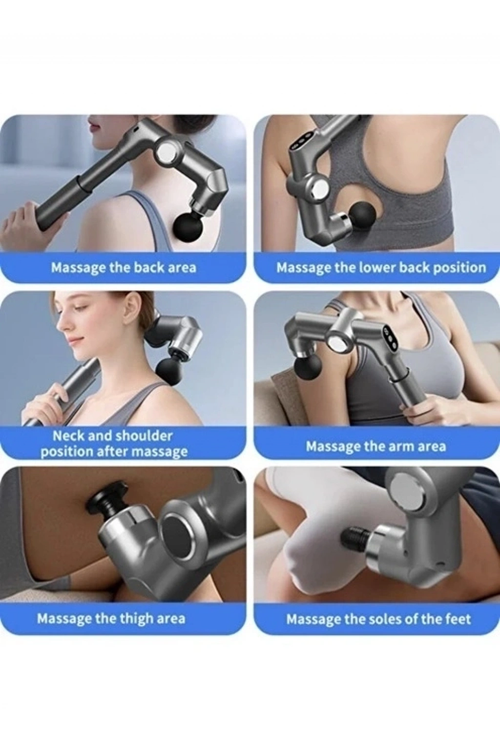 6 farklı masaj başlığı sayesinde vücudun farklı kas gruplarına uygun masaj uygulayabilirsiniz. Ayarlanabilir 6 hız kademesi ile ihtiyacınıza göre yumuşak veya daha yoğun masaj seçenekleri sunar. Şarjlı ve kablosuz yapısı sayesinde evde, ofiste veya spor sonrası her yerde rahatlıkla kullanılabilir.