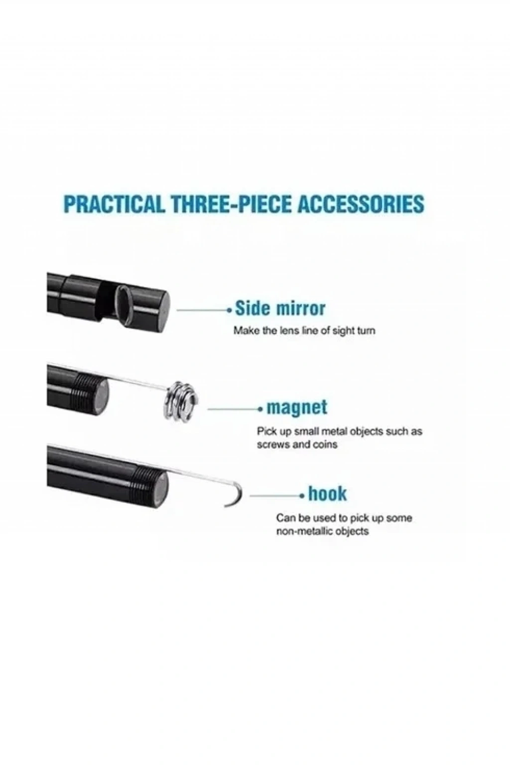 21 ons Paket Listesi: 1 * 3 in 1 USB Endoskop 1 * Kanca 1 * mıknatıs 1 * Yan Ayna 1 *