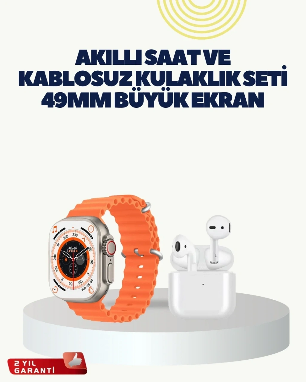 Watch 9 Max Akıllı Saat Kulaklık Seti, modern yaşamın hızına ayak uydurmak isteyen kullanıcılar için tasarlanmıştır. Günlük aktivitelerinizi kolaylaştıran akıllı özellikleri ve şık tasarımıyla hem iş hem sosyal yaşamda rahat bir kullanım sunar. Zengin set içeriği sayesinde tek bir ürünle birden fazla ihtiyacınızı karşılar.Bu özel set içerisinde Watch 9 Max akıllı saat, iki farklı kordon ve kablosuz kulaklık bulunmaktadır. Değiştirilebilir kordonlar sayesinde saatinizi dilediğiniz stile göre uyarlayabilirsiniz. Spor kordonu ile antrenmanlarda, klasik kordonu ile günlük kombinlerde rahatlıkla kullanabilirsiniz.Saatin sunduğu adım sayar, nabız sensörü ve uyku takibi özellikleri sayesinde günlük sağlık verilerinizi düzenli olarak takip edebilirsiniz. Mesaj ve arama bildirimleri ile telefonunuza bağlı kalmadan iletişimde kalmanız mümkündür. Sesli görüşme özelliği, özellikle yoğun anlarda büyük kolaylık sağlar.45 mm kasa çapı ve gümüş renkli şık gövdesi ile Watch 9 Max, modern ve zarif bir görünüm sunar. 300–400 mAh batarya kapasitesi, gün boyu kullanım için yeterli performans sağlar. Titreşim özelliği sayesinde bildirimler sessiz ama etkili bir şekilde iletilir.Kablosuz kulaklık, müzik dinlerken veya telefon görüşmelerinde konforlu bir deneyim sunar. Watch 9 Max Akıllı Saat Kulaklık Seti; fonksiyonel özellikleri, es tasarımı ve kullanım kolaylığı ile günlük hayatınızı daha pratik hale getirir.