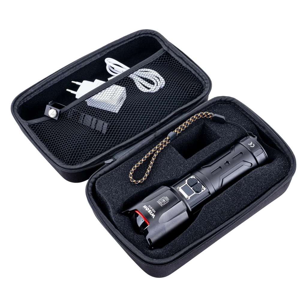 Wison El Feneri, yüksek gücü, dayanıklı yapısı ve uzun ömürlü şarj kapasitesi ile profesyonel kullanıcılar ve macera tutkunları için en iyi seçimasma imkanı için askı atı bulunur.