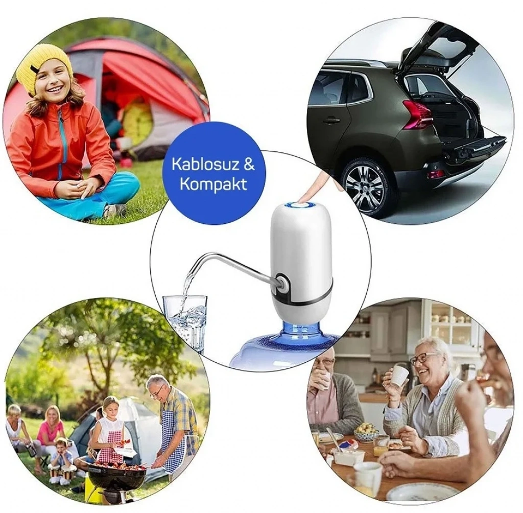 Taşınabilir Kablosuz Şarj Edilebilir Damacana Su Pompası