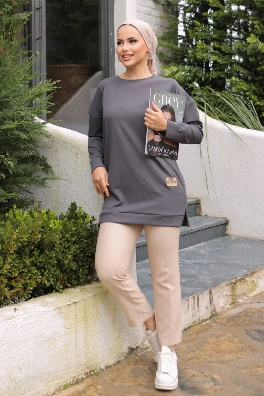 Yeni Stil Gri Füme Detaylı Tunik 10020