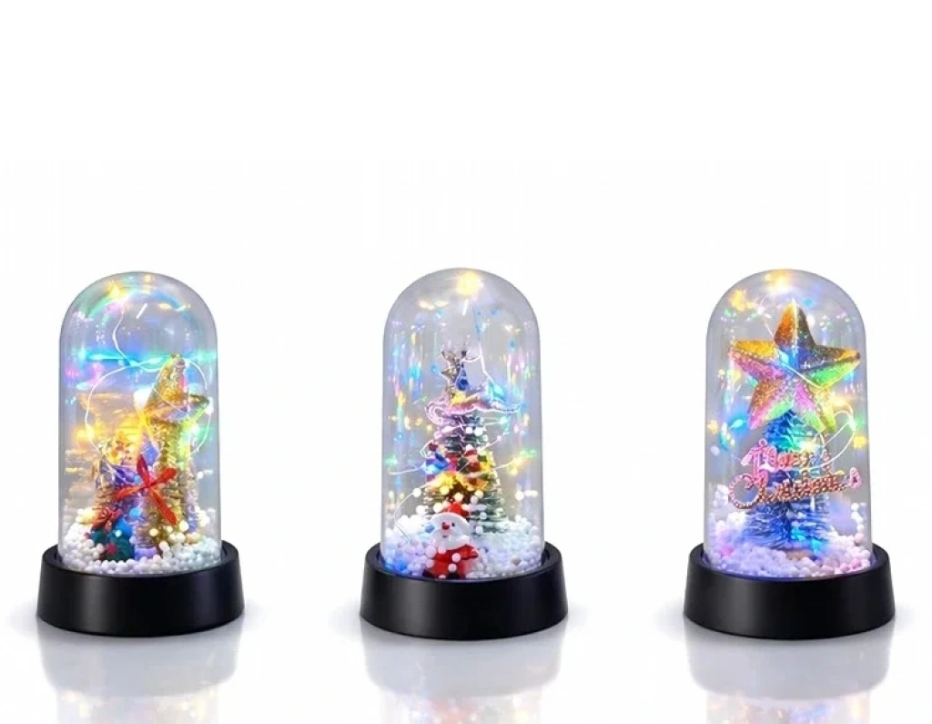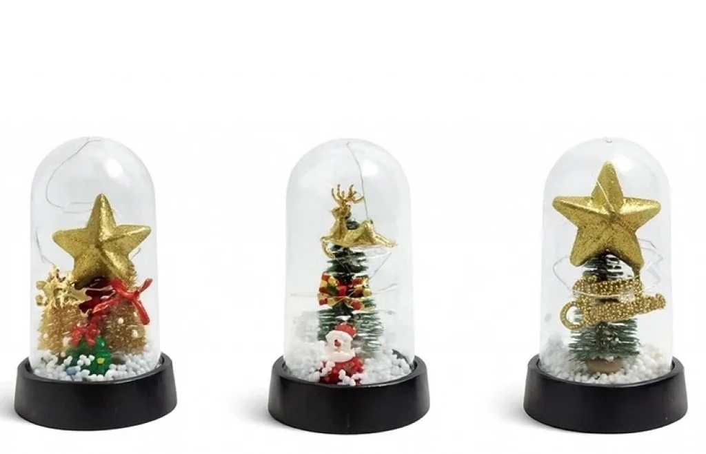 Yılbaşı Temalı Işıklı Dekoratif Cam Fanus Alk5038 Ürün Ölçüleri 15*8 Cm