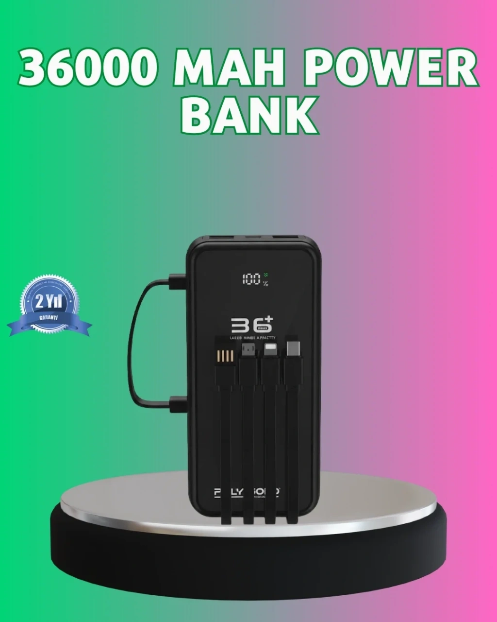 Bu powerbank, dahili kabloları ve çoklu bağlantı seçenekleriyle maksimum kullanım kolaylığı sunar. Telefonunuzun şarjı bittiğinde kablo aramak zorunda kalmadan anında şarj edebilirsiniz.Yüksek kapasitesi sayesinde kamp, seyahat, iş ve günlük kullanım için uygundur. Sağlam gövde yapısı uzun ömürlü kullanım sağlar.