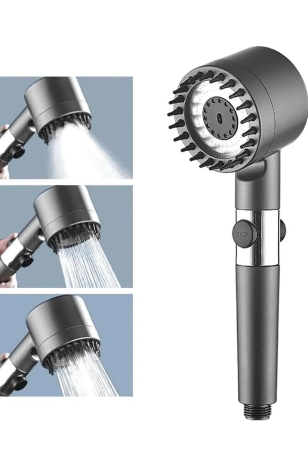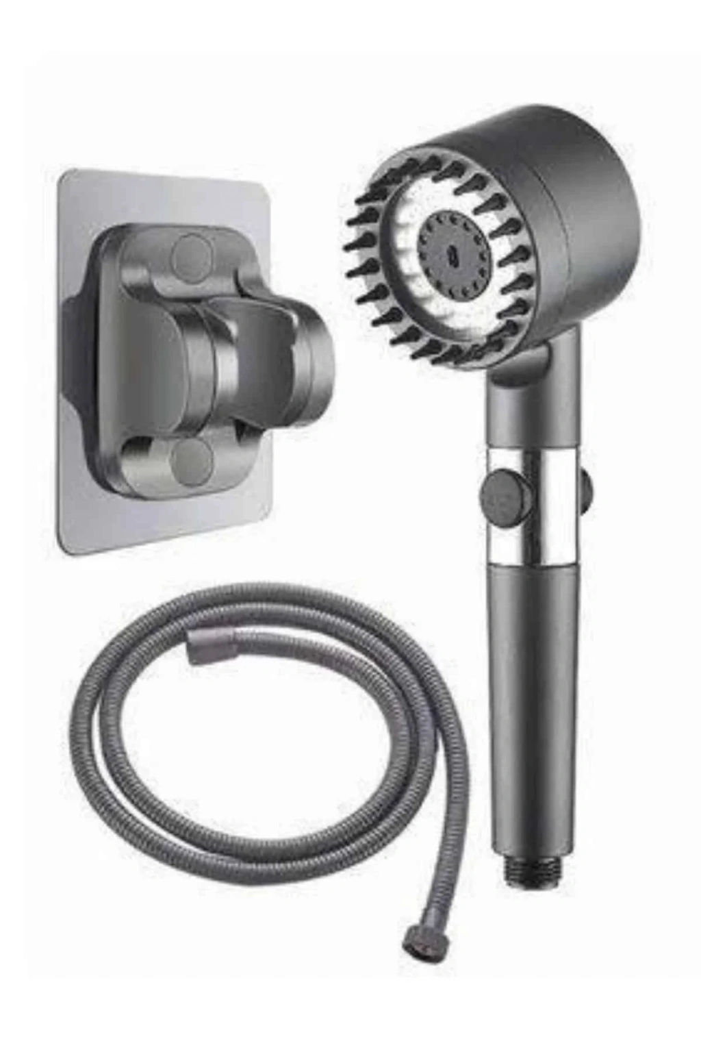 Krom kaplama malzemesiyle üretilmiş olan bu duş başlığı, hem es görünümüyle banyonuza şıklık katarken hem de uzun ömürlü ve dayanıklı bir kullanım sunar. Paslanmaya karşı dirençli yapısı sayesinde ilk günkü parlaklığını uzun süre korur ve günlük kullanımda yüksek performans sağlar. Üç farklı masaj modu sayesinde duş keyfinizi bambaşka bir seviyeye taşıyan bu ürün; rahatlatıcı, canlandırıcı ve derin doku masajı seçenekleriyle kişisel konforunuzu ön plana çıkarır. Günün stresini üzerinizden atmak veya güne zinde başlamak için ihtiyacınıza göre kolayca modlar arasında geçiş yapabilirsiniz.Kullanıcı dostu tasarımı sayesinde kurulumu oldukça basittir; ekstra bir ekipmana gerek kalmadan dakikalar içinde monte edilebilir. Ergonomik tutuşu ve su tasarrufu sağlayan yapısıyla hem çevre dostu hem de ekonomik bir kullanım sunar. Pratik kullanımı sayesinde her banyoya kolaylıkla entegre edilebilen bu duş başlığı, fonksiyonel ve şık bir banyo aksesuarı arayanlar için ideal bir seçimdir.