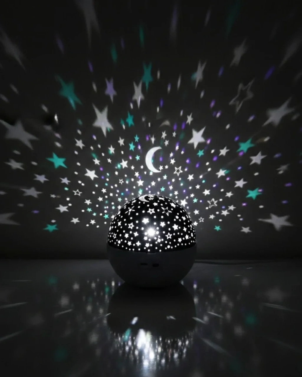 Fişe takılarak çalışan yıldız projektör gece lambası, pratik ve güvenli kullanım avantajı sunar. Yıldız yansımaları, özellikle çocukların uykuya geçiş sürecini kolaylaştırır ve rahatlatıcı bir ortam oluşturur.Ayarlanabilir ışık seçenekleri ve müzik hoparlörü sayesinde çok yönlü kullanım imkânı sağlar. 30 dakikalık otomatik kapanma fonksiyonu, gece kullanımında ekstra konfor sunar.