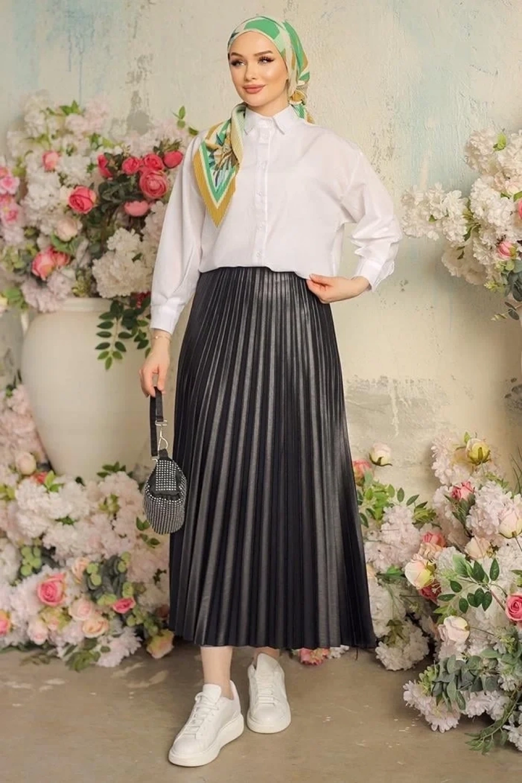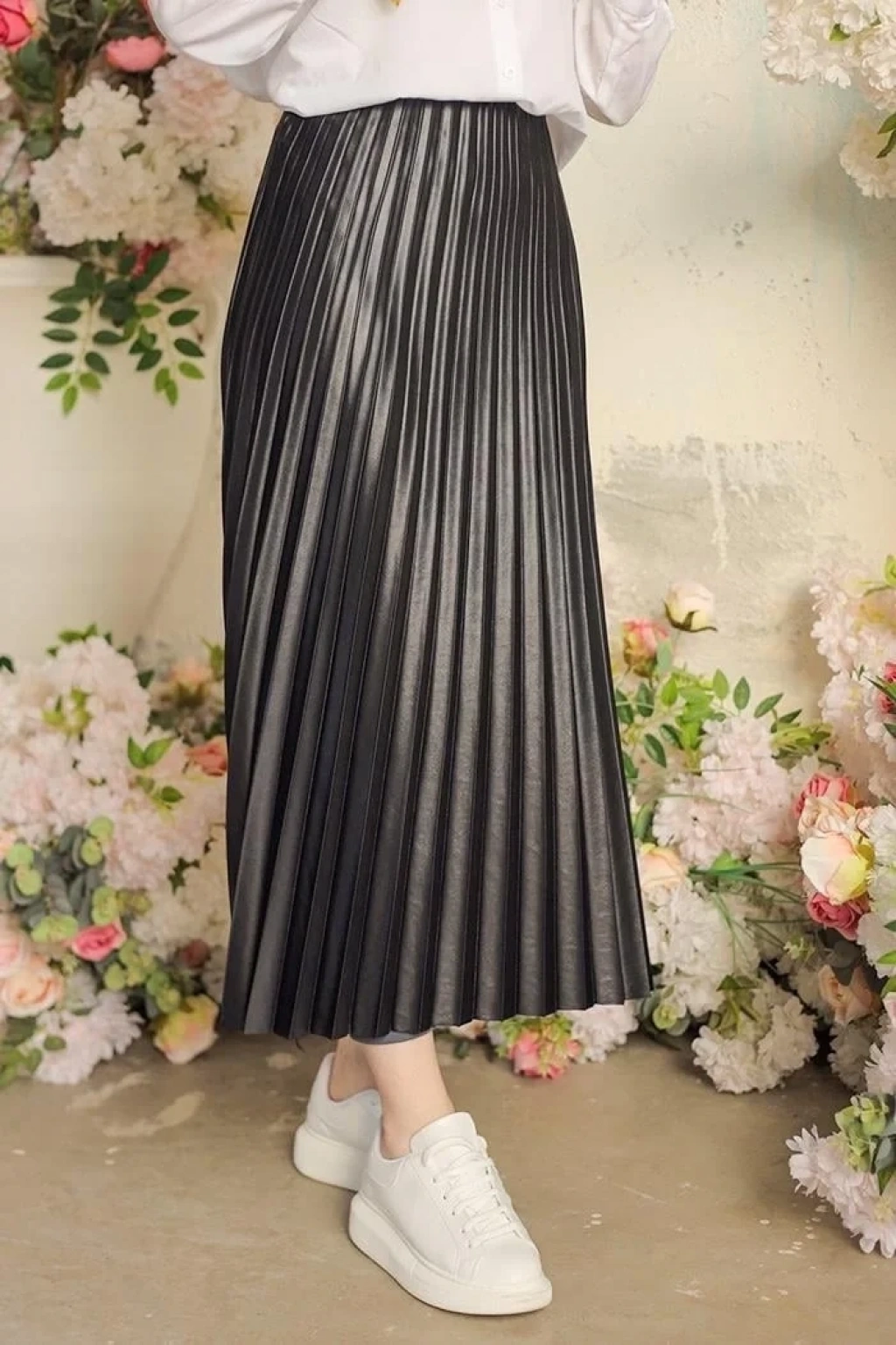 Sonuç olarak, pileli parlak krep gizli lastikli siyah etek, şıklığı ve rahatlığı bir araya getirerek her zaman tarzınızı ön plana çıkarır. Modern tasarımı ve özel detaylarıyla dikkat çeken bu etek, her kombinde göz alıcı bir seçenektir.