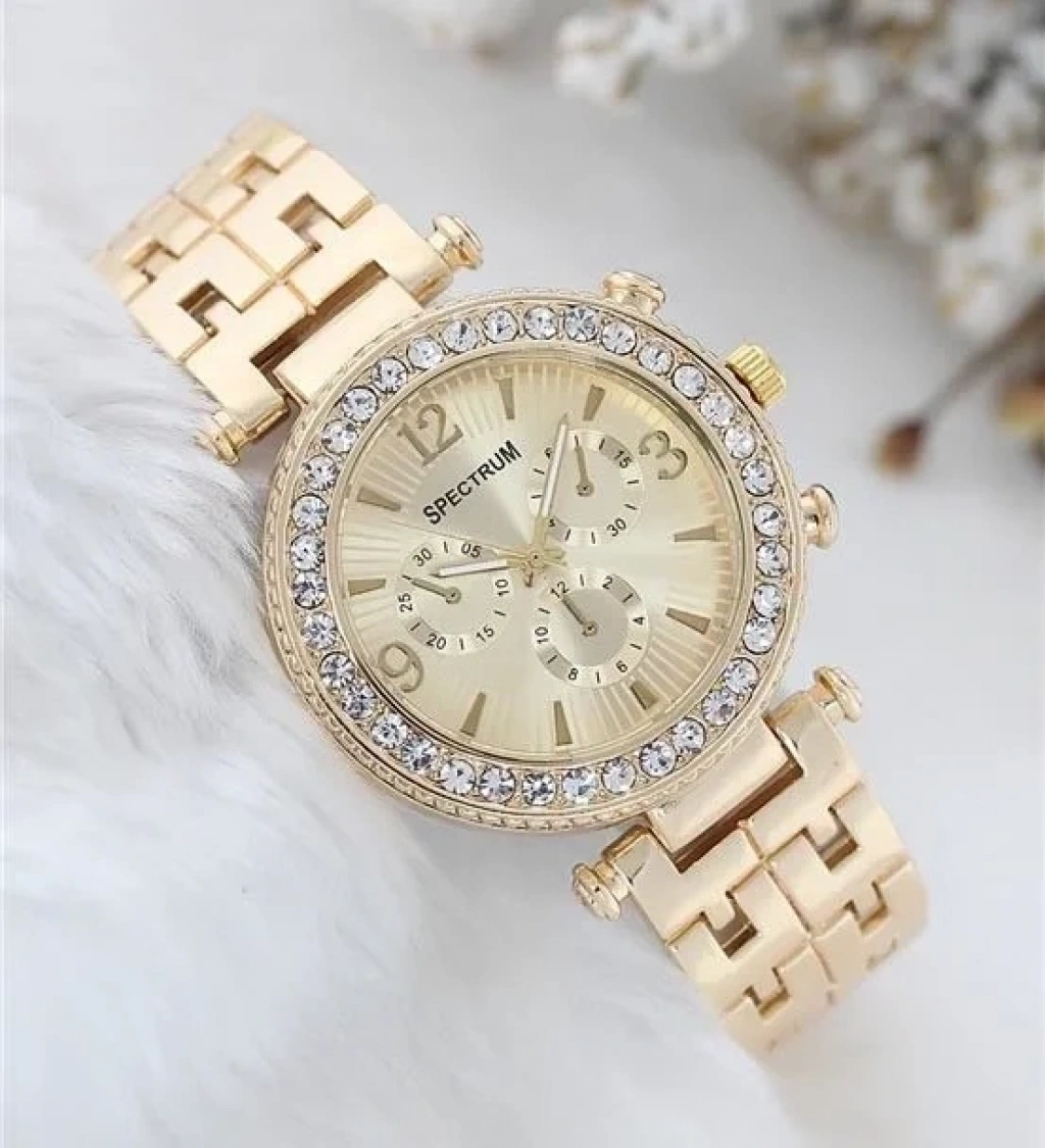 Anahtar Kelimeler: Özel tasarım, gold renk, zirkon taşlı, metal, bayan kol saati, şık, zarif, minimal, dayanıklı, parıltılı,