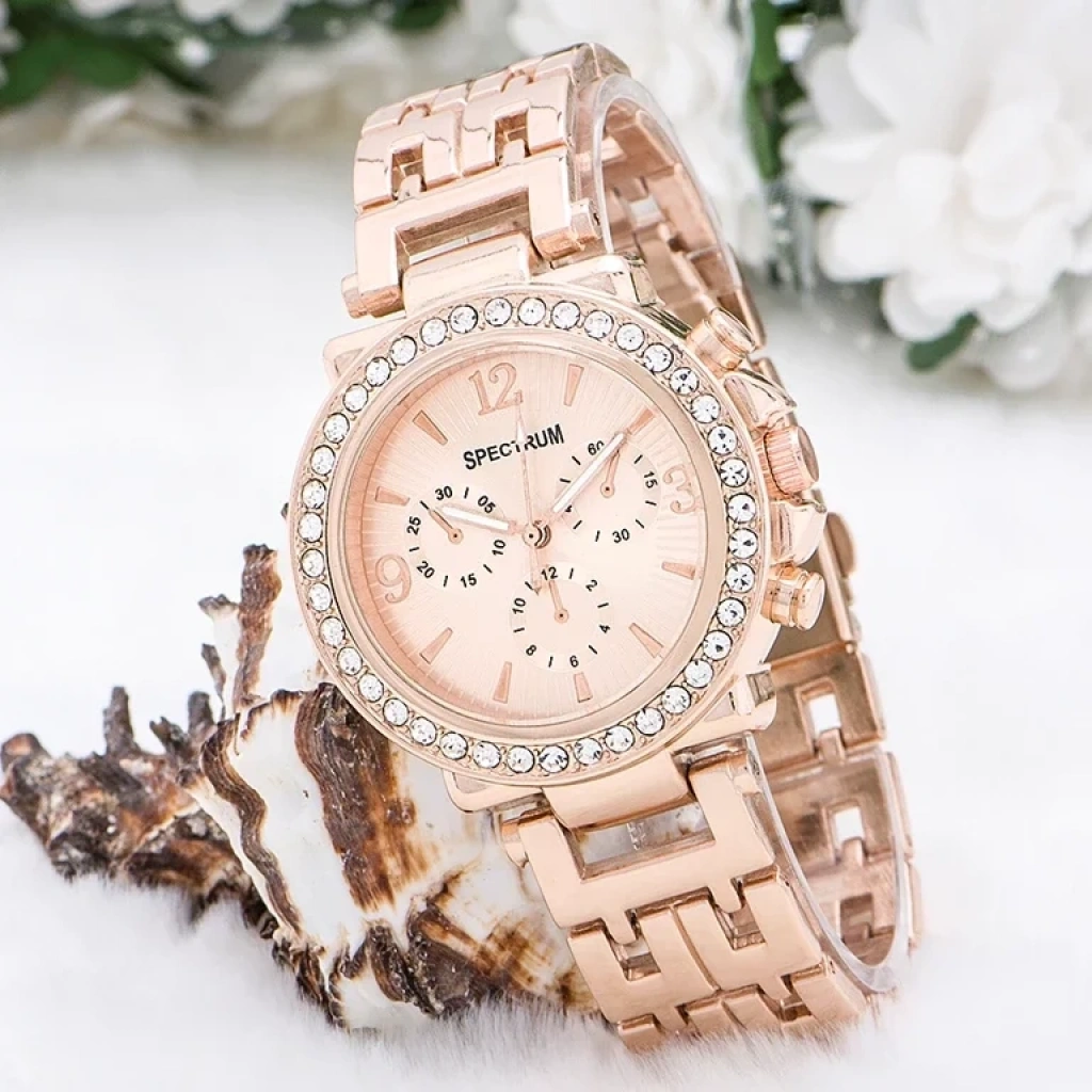 Bu özel tasarım rose renk zirkon taşlı metal bayan kol saati, hem şıklığı hem de zarafeti bir araya getiren göz alıcı bir aksesuardır. İşte bu saatin bazı önemli özellikleri: