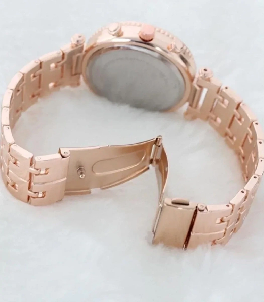 Zarif ve Şık Özel Tasarım Zirkon Taşlı Metal Bayan Kol Saati (Rose)