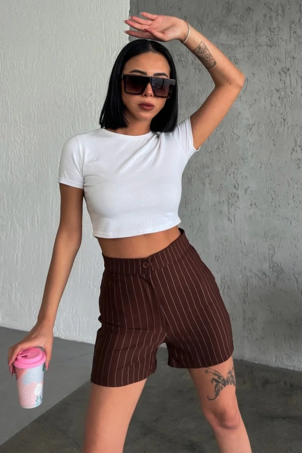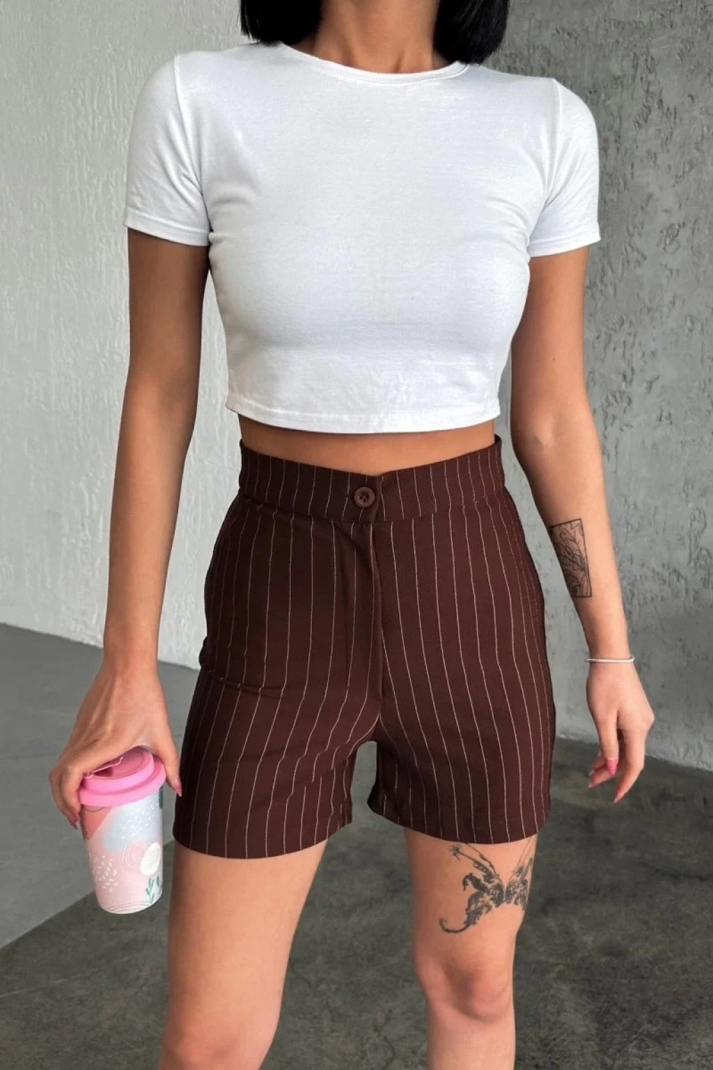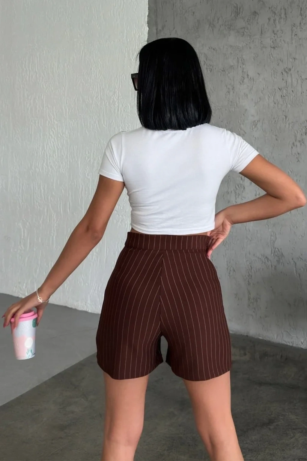 -Bu göz alıcı yüksek bel krep çımalı çizgili şort, doğanın sıcak ve zarif tonlarından esinlenerek tasarlandı. Kahverengi rengi, doğallığı ve şıklığı bir araya getirirken, esnek likralı kumaşı ise gün boyu rahatlık sunuyor.